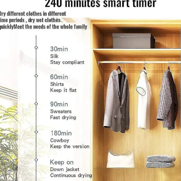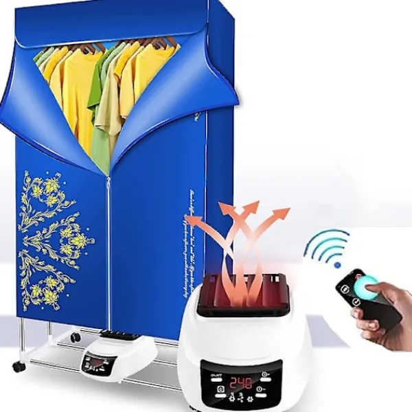 Fjärrkontroll och timer: Vår hopfällbara torktumlare är utrustad med en fjärrkontroll, den maximala torktiden är 240 minuter, du kan justera temperaturen och torktiden efter olika kläder och säsongsbehov. n nNär den inställda tiden har gått ut stängs maskinen av automatiskt. n nBärbar, ekonomisk och hygienisk: Våra torktumlare är små maskiner för regniga dagar. n nDen torkar dina kläder enkelt utan att du behöver oroa dig för obehagliga lukter från högar med våta kläder. Om du har en behöver du inte gå till tvättomaten för att torka dina kläder, vilket sparar tid och ger bättre hygien. Perfekt för familjer, lägenheter, resor. n nPaketet innehåller: n n1x torktumlare n n1x manual n n1x UK adapterkontakt n n1x fjärrkontroll n nStorlek: 22,5x29x16,5cm n nKan den tidsinställas: Ja n nTidsinställning: 60-240 minuter i fyra lägen n nEffekt: 1500-1800W Spänning: 220V n nTorkläge: hög hastighet, låg hastighet, normal vind n nProdukter från ”s butik