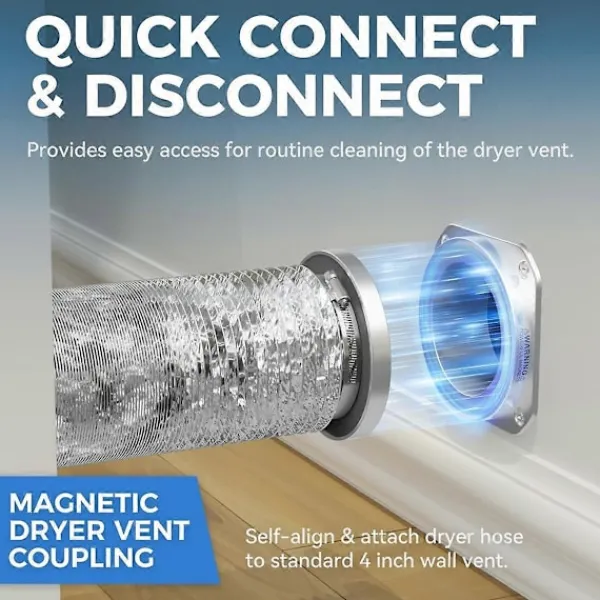 Förbättrad säkerhet och effektivitet: Detta magnetiska torktumlarkopplingskit har en stark magnetisk självjusteringsmekanism som säkerställer en säker och pålitlig anslutning. Det underlättar enkel åtkomst för rutinrengöring, vilket minskar risken för luddansamling och potentiella torktumlarebränder, vilket förbättrar både säkerheten och effektiviteten i ditt hem.