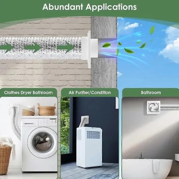 Rikliga Användningsområden: Lämplig för lösningar för luftkanaler i bostäder; Används ofta i badrumsventilation, torktumlare, planteringsrum, tvättstuga, tvättskåp, bordsågsdamm, väggventilationsutlopp, tak- eller varmhusluftcirkulation, etc.