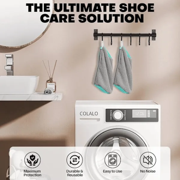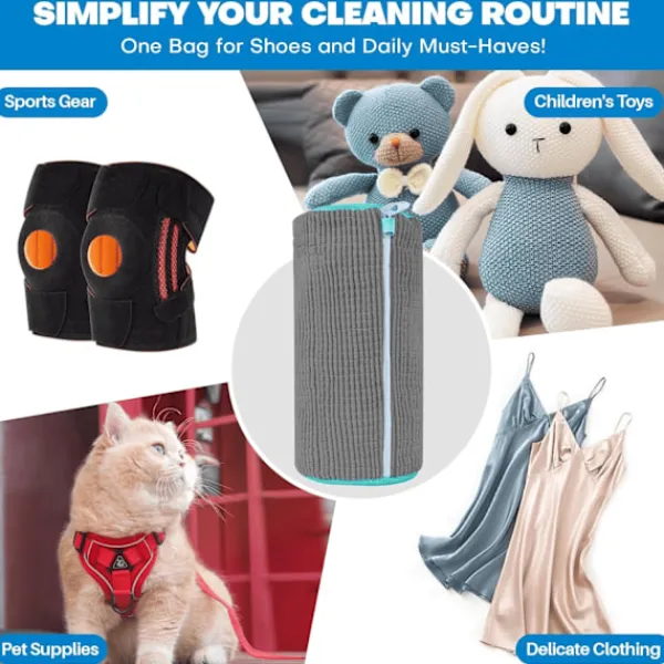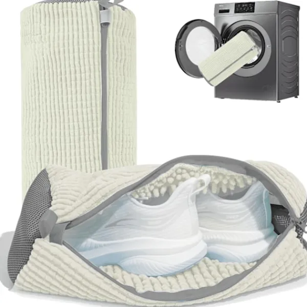 360° Djuprengöring: Tusentals 2,5 cm chenille-mikrofibertrådar omger dina skor för en fullständig, skonsam rengöring – du behöver inte längre skrubba för hand. Släng bara in den i tvättmaskinen och låt påsen göra jobbet samtidigt som den skyddar dina skors form och tyg.