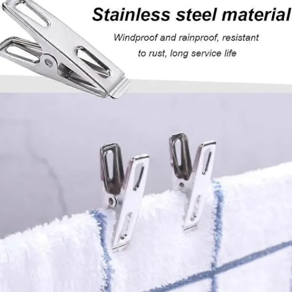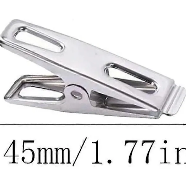 Beskrivning Tåligt material: Våra klädnypor är tillverkade av högkvalitativt rostfritt stål, starka och hållbara, ytan är slät och plan, vattentät och rostskyddad och kan återanvändas. Fjäderdesign: Klädnyporna i rostfritt stål är designade med starka fjädrar, kan klämma fast föremålet maximalt, är inte lätta att falla av och ger mer bekvämlighet i ditt liv. Används ofta: Metallklädnyporna är lämpliga för olika områden, såsom klädstreck, matförslutningsklämma, filmapp etc. Perfekt för att fixera strumpor, handdukar, halsdukar, kläder och andra dagliga förnödenheter. Bekväm och enkel att använda: Den platta designen på den lilla klädnypan lämnar inga klämmärken på föremålen eller skadar kläderna efter användning. Den är bekväm att använda, delikat och kompakt och lätt att förvara och bära.