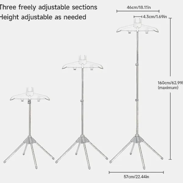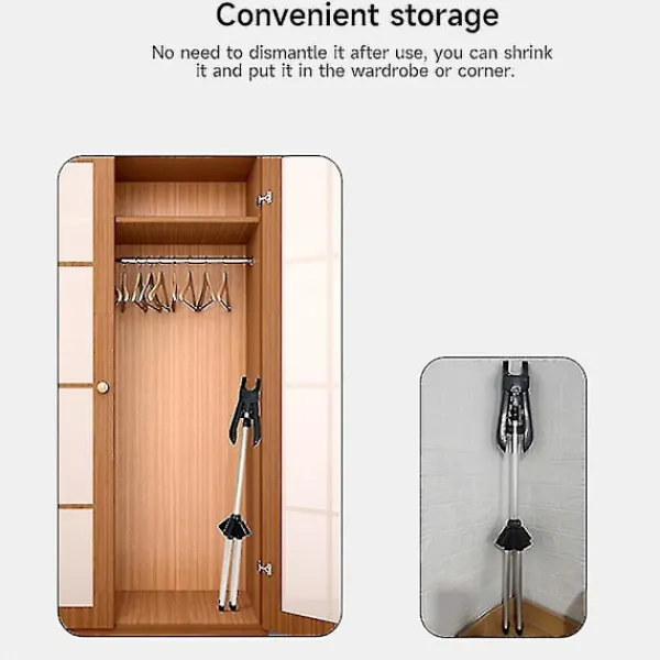 FunktionerJusterbar höjd: Stativet har en teleskopisk stång som kan förlängas upp till 63 tum/160 cm, vilket gör att du kan välja optimal höjd för ångning av olika typer av kläder.Stryka dina kläder enkelt: Stativets böjda galge gör att du kan rotera dina kläder i alla riktningar. Detta ger dig flexibiliteten att stryka dem från olika vinklar och förhindra tygskador.Lätt och hopfällbar: Detta stativ väger endast 0,6 kg/1,3 pund, vilket gör det enkelt att flytta runt. Eftersom det enkelt viks ihop kan du förvara det utan att montera isär det. Detta sparar utrymme och besvär.Brett användningsområde: Detta stativ är idealiskt för olika tillfällen. Oavsett om du reser till hotell, bor hemma, arbetar i klädfabriker eller driver klädbutiker kan du använda det för att ånga dina kläder snabbt och bekvämt.Stark och solid: Denna klädhängare är tillverkad av tjockare aluminiumlegeringstång som tål tunga laster och förhindrar böjning. Den fyrkantiga stödstrukturen i botten ger en stabil och balanserad bas.Specifikationer Namn: Klädångarställ Material: aluminiumlegering Storlek: upp till 160 cm/63 tum Färg: grå, svart Paketet innehåller Klädångarställ *1