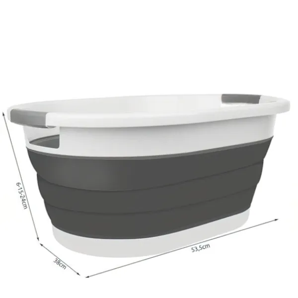 Behöver du en tvättkorg, en förvaringslösning eller ett provisoriskt badkar? Då är denna korg perfekt för dig. Tillverkad av hållbar silikon och plast, är den både robust och enkel att rengöra. Med en kapacitet på 25 liter och möjlighet att justera till tre olika höjdnivåer, erbjuder den flexibilitet och praktisk användning.