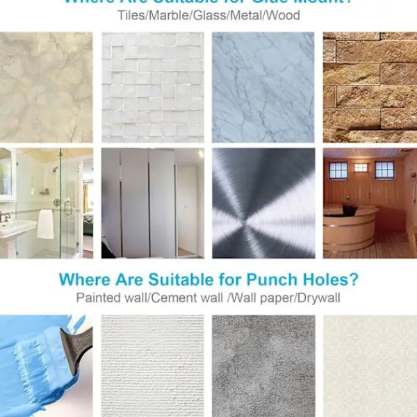 【Två typer av installation】 Tvättlinan har två sätt att installera, skruvmontering och fri borrning, levereras med lim och monteringsskruvar. Torklinan kan installeras på vilken vägg som helst. Den släta väggen(Släta kakel/marmor/glas/metall/massivt trävägg/frostad ) använder installationen av lim, och den oregelbundna väggen(Stuckvägg/tapet/cementvägg) använder installationen av en borr. Du kan välja lämplig installationsmetod enligt din husstruktur för att installera tvättlinan.