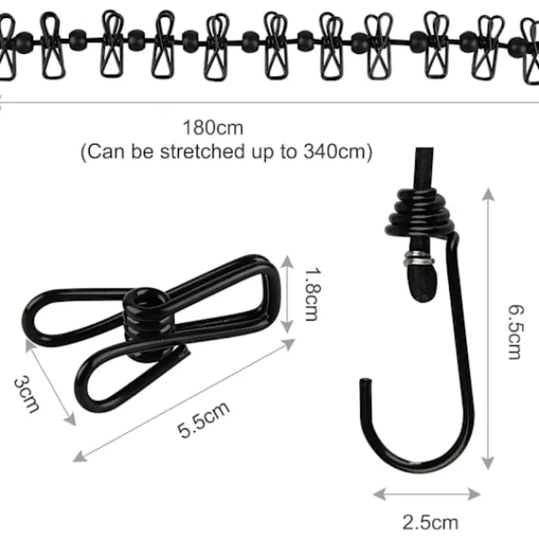 Utrymmesbesparande: Klädstrecket med krok kan vikas ihop och förvaras i bagage eller bil för att spara utrymme. Perfekt för resor och resor!