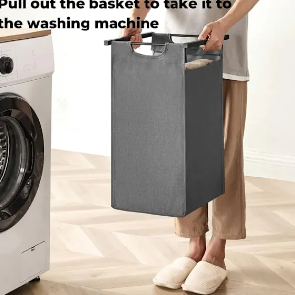 Med sin mångsidiga och moderna design passar denna tvättkorg perfekt i såväl tvättstugan som badrummet eller sovrummet – där det finns behov av praktisk förvaring och snygg funktionalitet.
