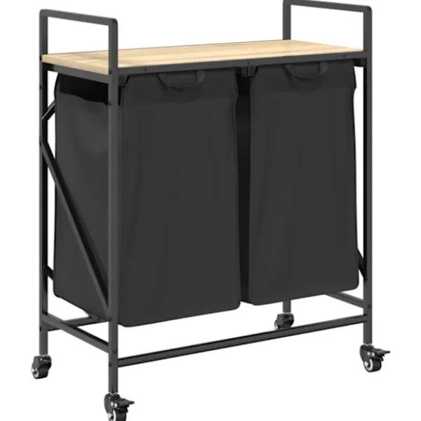 Tvättkorgen är en rymlig och praktisk förvaringslösning med utdragbara påsar och hjul som gör det enkelt att organisera och transportera din tvätt.
