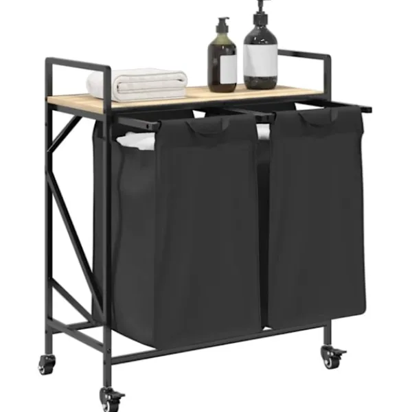 - Övre förvaringsyta: Tvättkorgen har en topphylla som erbjuder en praktisk lösning för att hålla dina nödvändigheter inom räckhåll. Perfekt för förvaring av toalettartiklar, tvättmedel, sköljmedel eller till och med dekorativa föremål.