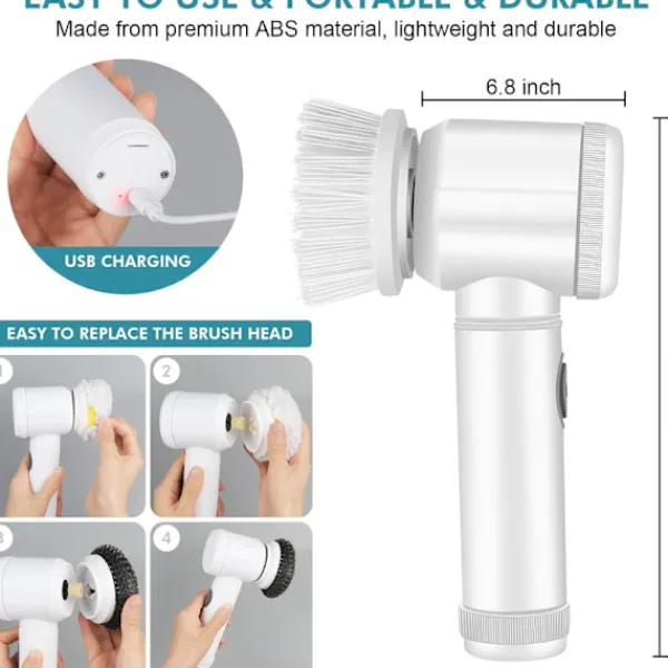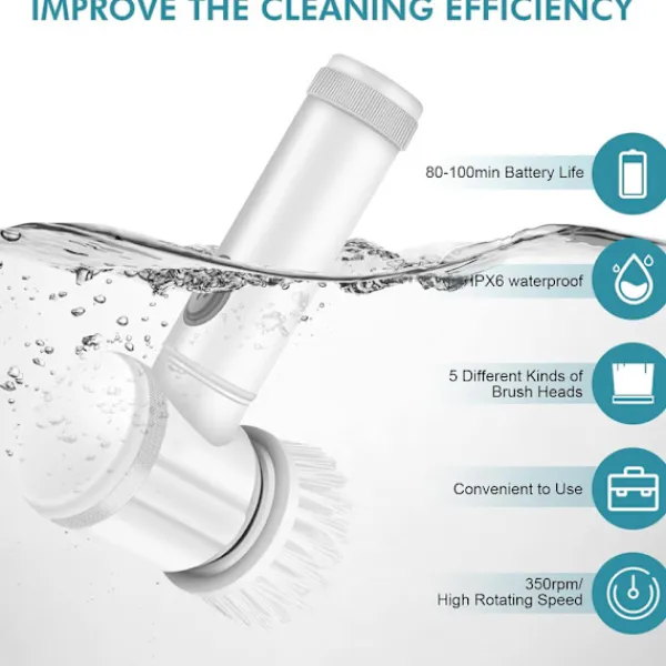 【Effektiv rengöringsprestanda】 – Den elektriska roterande skrubbern är utformad för att ge effektiv rengöringsprestanda för olika ytor. Med sin kraftfulla motor och 5 utbytbara borsthuvuden kan den effektivt skrubba och ta bort smuts, avlagringar och fläckar från badkar, golv, väggar, kakel, toaletter, fönster och diskhoar.