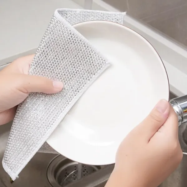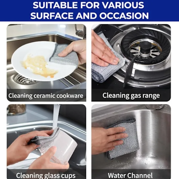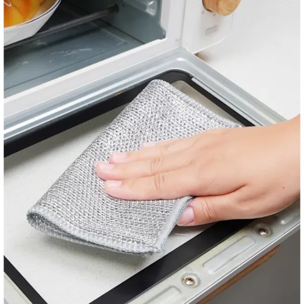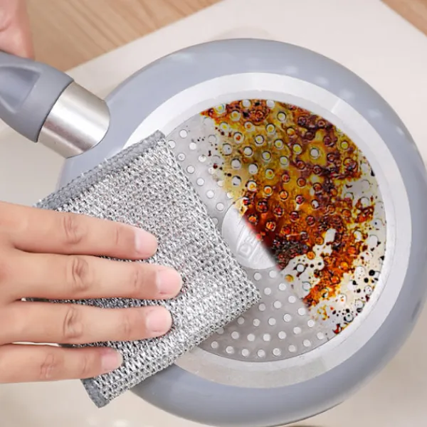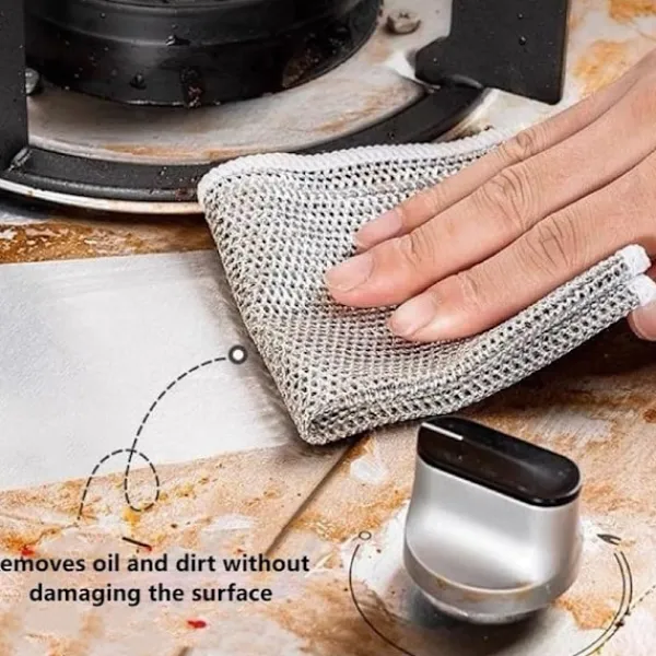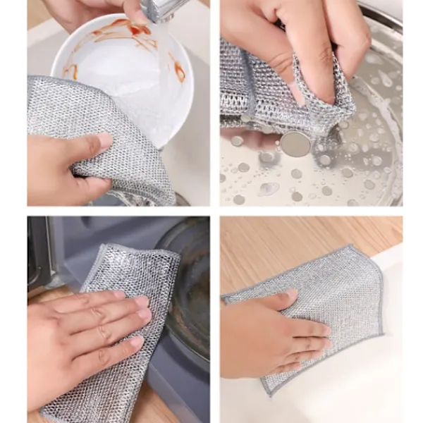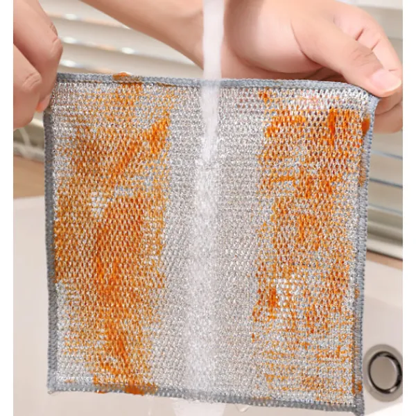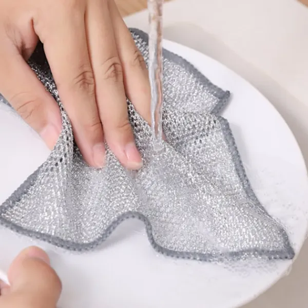 Lätt att rengöra: Ståltrådsduken är lätt att rengöra, skölj den bara eller lägg den i diskmaskinen, så blir den som ny; Den är mer hygienisk och bekvämare att använda än traditionella diskhanddukar, och den kan återanvändas under lång tid
