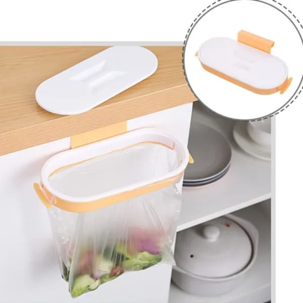 1 stycke (Gul) Sopsäckshållare Hängande Sopsäckställ med Lock Sopåsar Förvaringsfäste för Hem och Kök
