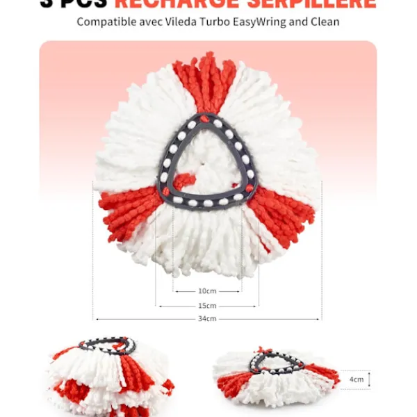 Högkvalitativt snurrande magiskt mopphuvud; Lätt att byta ut, fungerar effektivt och säkerställer säkerhet; Extra tjock kvalitet för längsta livslängd och djupaste rengöring; Professionell kvalitet för hem- och kommersiellt bruk; Standardstorlek Ersättningsmopphuvud, Lätt rengöring av mopphuvudbyte