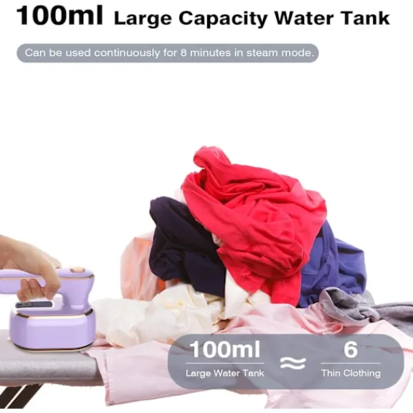 【20s snabb uppvärmning】Minidamptången har 1000 watt effekt, vilket kan värmas upp snabbt på 20 sekunder för 338℃ konstant temperaturstrykning. Mycket snabbare än traditionella ångstrykjärn, få kläder tillbaka till nya på nolltid. Den keramiska titan non-stick-sulan på minitången är mycket hållbar, leder värme snabbt och jämnt, säkerställer smidig glidning på tyget, tar effektivt bort rynkor och skyddar dina kläder bättre. 【2-i-1 våt- och torrångstrykjärn】Vårt minitångjärn har två lägen för ångstrykning och torrstrykning, du kan klicka på knappen för att välja att stänga av eller slå på ångan och växla mellan ånga och torrstrykningsfunktioner. Olika stryklägen uppfyller dina dagliga strykjärnsbehov och sparar tid effektivt. Klädångaren kan användas för att stryka siden, plysch, bomull, linne och andra tyger. 【100ml vattentank kontinuerlig ånga】Handhållen klädångare har kontinuerlig kraftfull ångfunktion. som kontinuerligt kan mata ut ånga med en knappöppning, och ångvolymen kan nå 16g/min. Den fina ångan har stark penetreringskraft, som enkelt och effektivt kan mjuka upp klädernas fibrer på djupet och ta bort olika rynkor och envisa veck. Den stora vattentanken på 100 ml/3,4 oz kan rymma tillräckligt med vatten, och ångan kan fungera kontinuerligt i cirka 8 minuter. 【Spetsig kurvig design】Framsidan av värmeplattan är designad i en triangulär spetsform, vilket möjliggör flexibel strykning av smala områden som knappar, knapphål och kragar. Du kommer att kunna använda detta bärbara resejärn med lätthet. 【180° rotationsdesign】Detta minidamptångjärn kan roteras 0°-90°-180° för att justera utrymmet för att hålla handtaget. Den kan tryckas och dras för strykning och hängas upp för svepningstrykning. Miniresejärnskroppen är mycket liten och lätt, väger endast 1 pund, den kan läggas i en handväska.