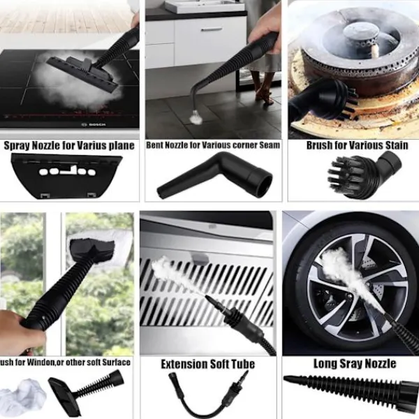 9-Delars Tillbehörssats – Få en komplett rengöringsupplevelse med det kostnadsfria tillbehörskitet, inklusive kort spraymunstycke, böjd spraykopp, fönster-/dörrrengöringsverktyg och mycket mer