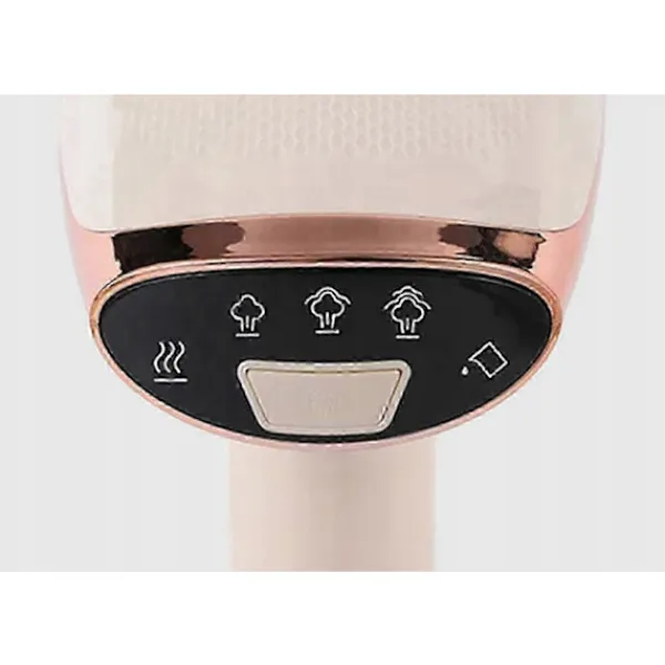 DISPLAY LED-displayen har också en värmeindikator för enheten. Tack vare den vet du när ångaren är redo att användas. På höger sida av displayen finns en diod som informerar om den låga vätskenivån i tanken. Detta är mycket användbart. Du behöver inte övervaka vattnet i tanken då och då! 280ML TANK Tack vare den rymliga tanken blir strykningen extremt bekväm, eftersom den inte behöver fyllas på ofta med vatten. Dessutom är processen att tillsätta vatten extremt enkel och bekväm. Den informerar automatiskt om den låga vattennivån med hjälp av LED-lampan på LED-skärmen. Du behöver inte övervaka vattennivån. En speciell ikon på kontrollpanelen informerar dig när du behöver fylla på vatten. Setet innehåller en extra mätare för vattenpåfyllning. Det underlättar processen att fylla på vätska i enheten utan risk för spill. HUR MAN STRUKAR DINA KLÄDER SNABBT OCH ENKELT? Häng kläder på en galge Häll kallt vatten i förångartanken Starta enheten och vänta på att enheten värms upp Sätt förångarens fot på materialet och börja stryka! Enhetsspecifikation: Färg: Beige / Guld Effekt: 1500W Strömförsörjning: 220-240V, 50/60Hz Vattenbehållare: 280ml Ånggenerering: max. 28g/min. Ånggenereringsreglering: JA, 3-steg Antal ångmunstycken: 7 Mått: 11x16x24cm Kabellängd: 1,8m Enhetens vikt: 0,8kg Setets innehåll: 1x Ångare för kläder XMaster 1x Klämma – borste 1x Extra mätare för att hälla vatten 1x Användarmanual