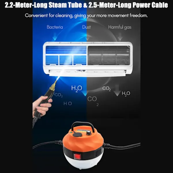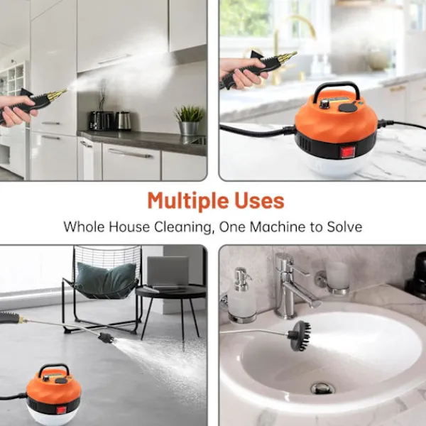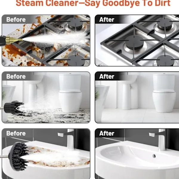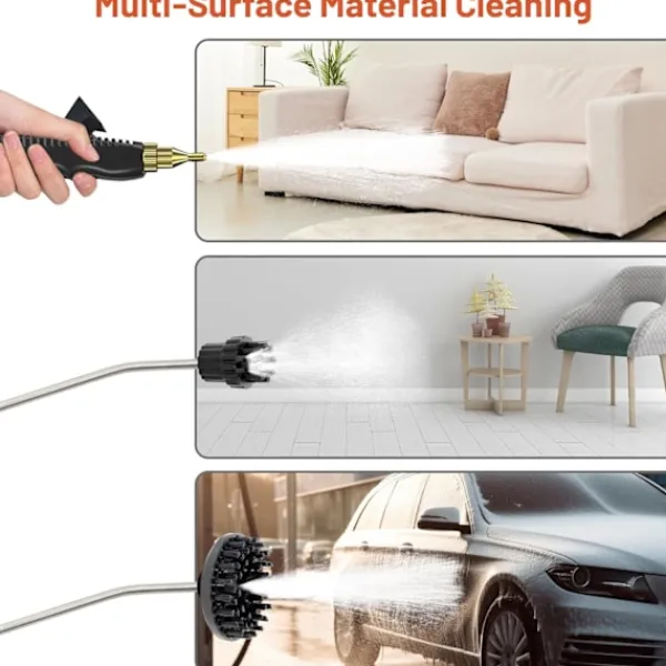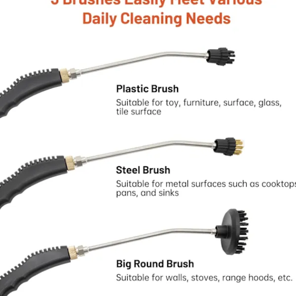 ?【3 Borsthuvuden, 8,6 tum förlängda】Ångrengöraren levereras med 3 olika borsthuvuden och förlängningsstång, långa kablar. De olika borsthuvudena passar olika ytor som mattor, fog och klädsel, vilket säkerställer en omfattande rengöringsupplevelse.