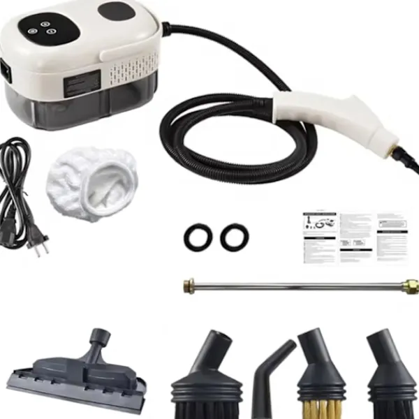 Praktiskt tillbehörsset: Bärbar design, kompakt kropp, lätt att bära. Utrustad med förlängningsstång, 2M ångslang, 2,5M strömkabel och andra tillbehör för att möta dina olika rengöringsbehov.