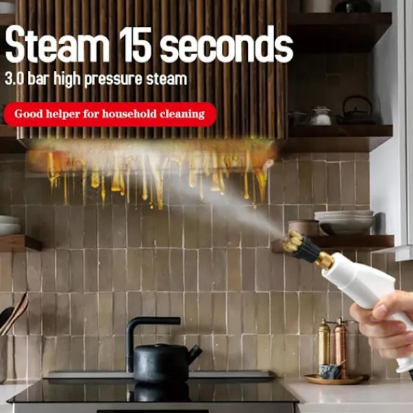 Bekvämare sätt att fylla på vatten: Designen med öppning upptill gör det enkelt att fylla på vatten; du kan fylla på vatten medan du arbetar, vilket gör din rengöring mer effektiv och bekväm. Snabb uppvärmning: 2500W hög effekt gör att din ångrengörare är redo på 15 sekunder och sprutar stark ånga för att rengöra fett, smuts och envisa fläckar på olika föremål och ytor på djupet.