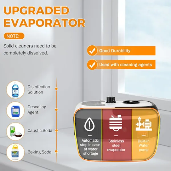 ENKEL ATT ANVÄNDA – Fyll bara på tanken med tillräckligt med vatten och slå på strömbrytaren för att börja rengöra. Du kan styra vatteninloppet genom att vrida på vredet för att justera ångutloppet. Den sparar mer vatten än traditionell handtvätt.