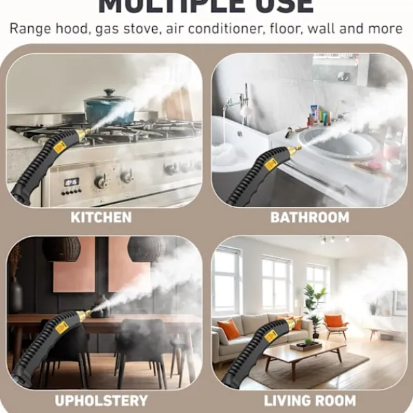 【Hög temperatur för kemikaliefri rengöring】: Genom att utnyttja höga temperaturer levererar vår ångrengörare kemikaliefri rengöring, effektivt eliminerar bakterier, bakterier och envis smuts med lätthet, vilket främjar en hälsosammare miljö för din familj eller
