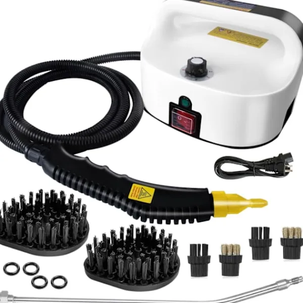??【2500W Hög temperatur & tryckångrengörare】 Ångrengörarens arbetseffekt är 2500W, den värms upp snabbt inom 15 sekunder och når 221°F/105°C, vilket är superkraftfullt och enkelt och grundligt kan lossa och lösa upp smuts, skära