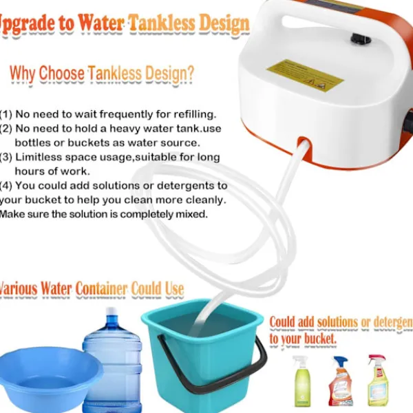 ??【78in rör & förlängd strömkabel & tre olika borsthuvuden】 Levereras med ett 78in rör och förlängd strömkabel, du behöver inte bära vattentanken hela tiden. Totalt väger mindre än 4 pund. ministorlek med lätt vikt. ?? Med 3