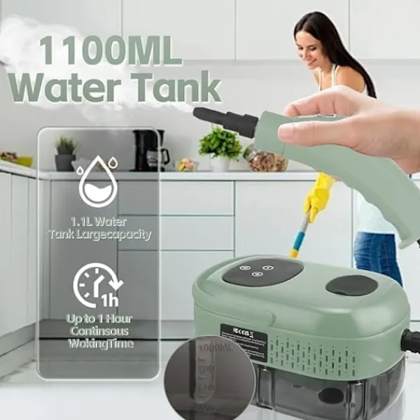 Kraftfull ångrengörare 2500W – 3BAR tryck, 1100ml tank, Touchpanel med justerbar ånga & 9 tillbehör
