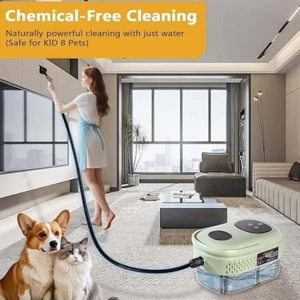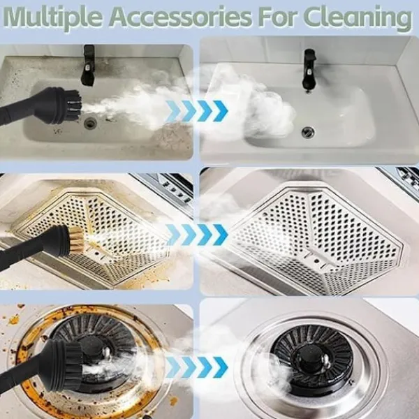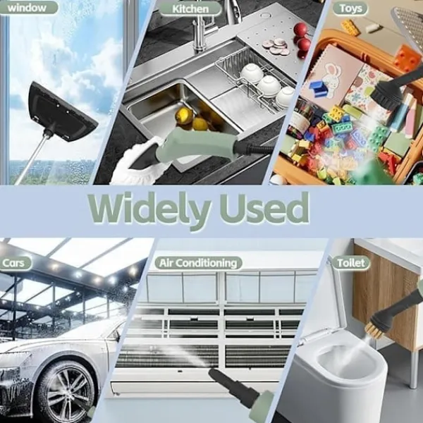 Inkluderar 2,2 m kontrollerbar ångstav, 2,5 m förlängd strömkabel och 9 praktiska tillbehör för olika ytor – perfekt för fogar, möbler, köksbänkar, duschar, mattor, fönster etc.