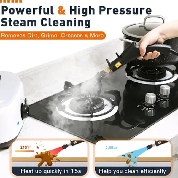 10 sekunder snabb uppvärmning, ingen väntan!: Rikta helt enkelt ångaren mot fläcken, tryck på strömbrytaren, och på bara 10 sekunder släpper den ut 230℉ högtrycksånga, vilket eliminerar den vanliga 3-4 minuters uppvärmningstiden. Med en stor 1500 ml tank minimerar den påfyllningar och möjliggör vattentillsats under drift för utökad rengöring. Njut av längre rengöringstid med vår ångrengörare med hög kapacitet och säg adjö till frekventa påfyllningar.