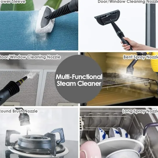 Denna handhållna ångrengörare levereras med 9-delade tillbehör.