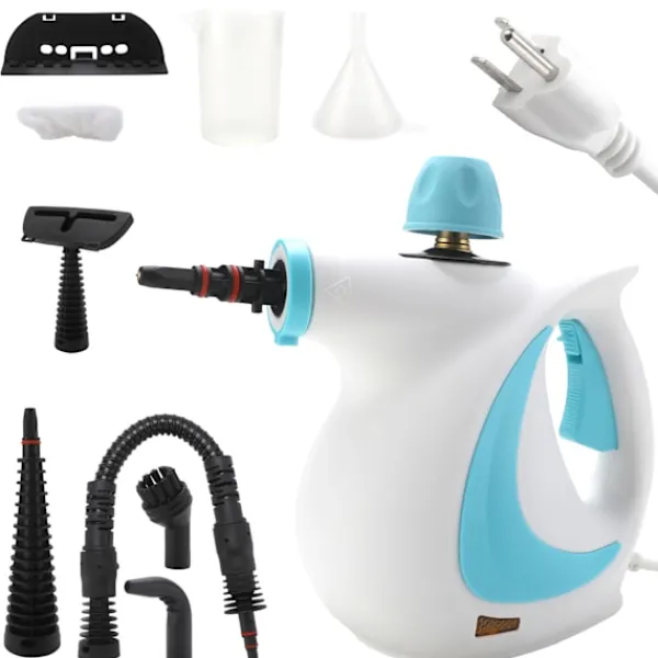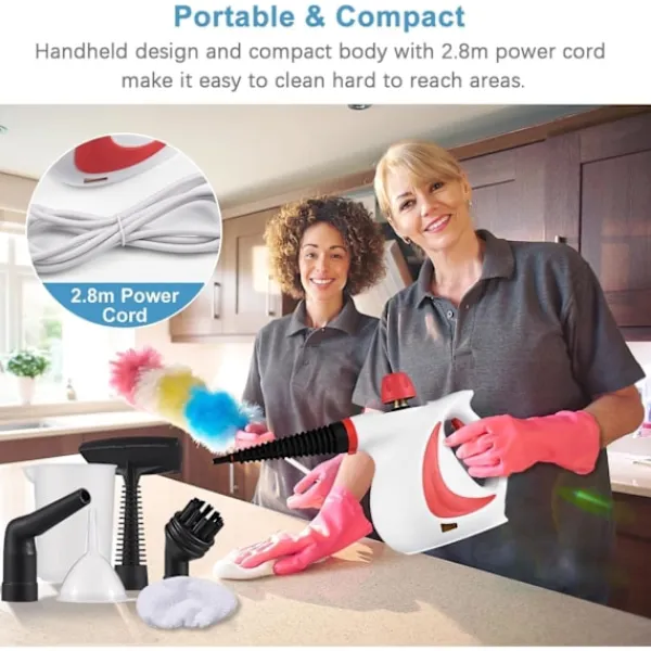 【Multifunktionell 9-delars tillbehörssats】 Handhållen ångare för rengöring, utrustad med 9 praktiska tillbehör för att möta olika rengöringsbehov. Oavsett om du rengör svåråtkomliga hörn, köksbänkar, diskhoar, toaletter, grillar etc.