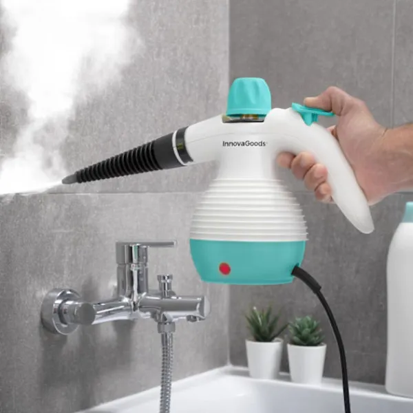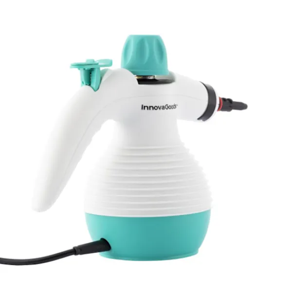 En handhållen ångtvätt med flera användningsområden som inkluderar nio tillbehör för en enkel och komplett rengöring på djupet. Ångtvätten rengör och desinficerar med trycksatt het ånga, är helt fri från kemiska produkter och avlägsnar effektivt fett, mögel och fläckar. Den möjliggör rengöring av hårda ytor såsom kakel, golv, handfat, bänkskivor, dörrar och fönster samt mjuka ytor såsom mattor, sängar, madrasser, täcken och soffor. Den värms upp på endast 3-5 minuter och släpper ut ånga i 15 till 20 minuter.- Handhållen ångtvätt för rengöring- Desinficerar med het ånga- Lämplig till hårda och mjuka ytorSpecifikationer:Färg: Vit, blåMaterial: PlastMått: ca. 29 x 13 x 23 cmKapacitet: 35 clTyp av kontakt: ELängd, kabel: 2.8 mTrycksatt ånga: 3 BARStröm: 1000 WFrekvens: 50-60 HzSpänning: 220-240 VFörpackningen Innehåller:1x Ångtvätt1x Långt munstycke1x Munstycke för fint flöde1x Munstycke för stora ytor1x Tillbehör för stort munstycke1x Runt borstmunstycke1x Flexibel förlängningsslang1x Trasa1x Tratt1x Mätbehållare1x Användarmanual