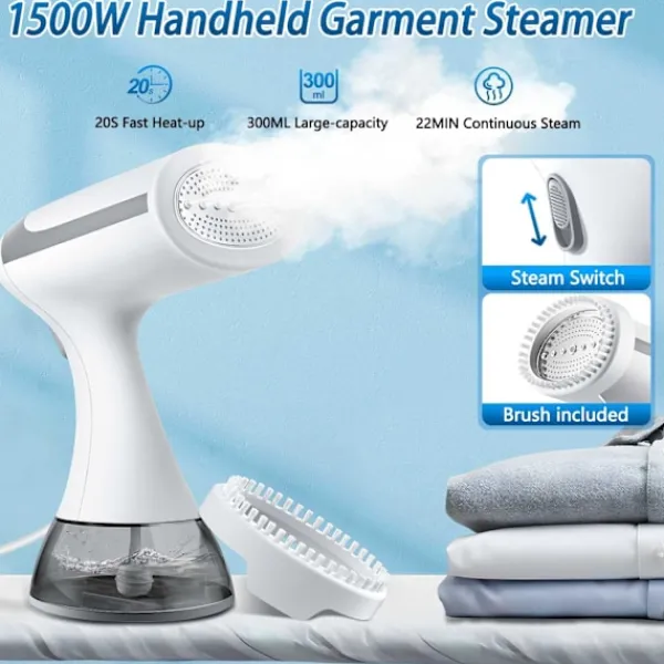 【Kraftfull & Snabb Rynkborttagning】Denna kraftfulla klädångare är utrustad med en effekt upp till 1500W, vilket kan producera rikligt med ånga på 20 sekunder, endast 20 sekunder för att värmas upp, du kan bli av med rynkor på nolltid med hjälp av den portabla enheten. Klädångare, som hjälper dig att spara tid och starta din bra dag!