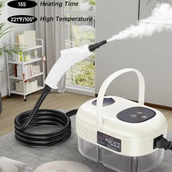Snabb Uppvärmningstid: 2800W hög effekt gör att din ångrengörare är redo på 15 sekunder, spraya stark ånga för att djupt rengöra envis fett, smuts och fläckar för ett brett utbud av föremål och ytor.