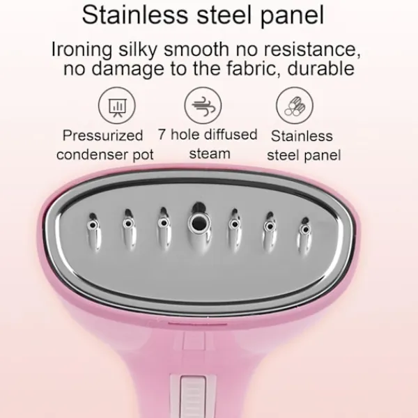 Hängande Strykjärn, 7 Hål Jämn Ånga, 280ml Stor Vattentank 7 hål för jämn ånga: Detta ångstrykjärn har 7 hål för att säkerställa att dina kläder ångas jämnt, vilket får dem att se fantastiska ut. Trycksatt stark ånga: 1500W hög effekt, säg adjö till den gamla frustrationen och livlösheten hos envisa veck lager för lager genom en mängd olika tyger, lätt att släta ut, inga skador på kläder Rostfritt stålpanel: Användningen av högkvalitativ skruvfri panel i rostfritt stål ger en silkeslen strykning utan motstånd, inga skador på tyget, jämn värmeledning, hållbar Enknappsstart: enknappsstart för strykläge, tre justerbara, låsbrytare, hållbar ånga, lätt att frigöra fingrarna. Stor vattentank: 280ML stor vattentankdesign, ultralång strykupplevelse, varaktig strykning av flera kläder, uppfyller enkelt en familjs strykbehov.