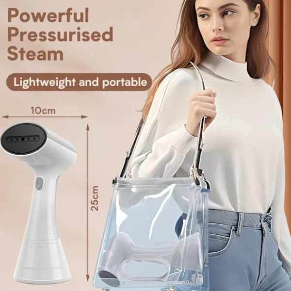 Kompakt och lätt att bära: Rese-ångaren är utrustad med en 220 ml avtagbar vattentank som enkelt får plats i din resväska, enkel ångning hemma och på resande fot. Värms upp på 20 sekunder, spara mer tid för att njuta av en bra dag!