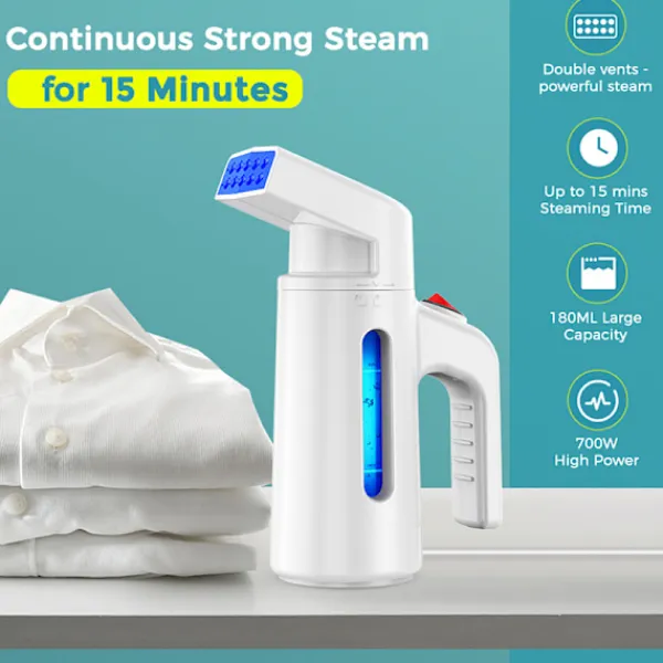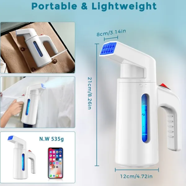 [180 ml vattentank] Utrustad med en 180 ml stor vattentank kan denna klädångare hantera 3–5 plagg per fyllning. Var försiktig så att du inte fyller över den maximala vattennivån och använd destillerat vatten för optimal prestanda.[Säker och pålitlig] Utrustad med dubbla säkerhetsfunktioner, inklusive temperaturkontroll och en automatisk avstängningsfunktion, ger vår klädångare trygghet under användning och förhindrar överhettning och torrbränning.[För alla tyger] Denna klädångare är lämplig för alla tyger, inklusive klänningar, sängar, mattor, gardiner, sängkläder, kuddar, soffor och barnleksaker. Tar inte bara bort rynkor, utan tar också bort damm, vilket säkerställer att dina kläder alltid håller sig fräscha.