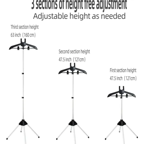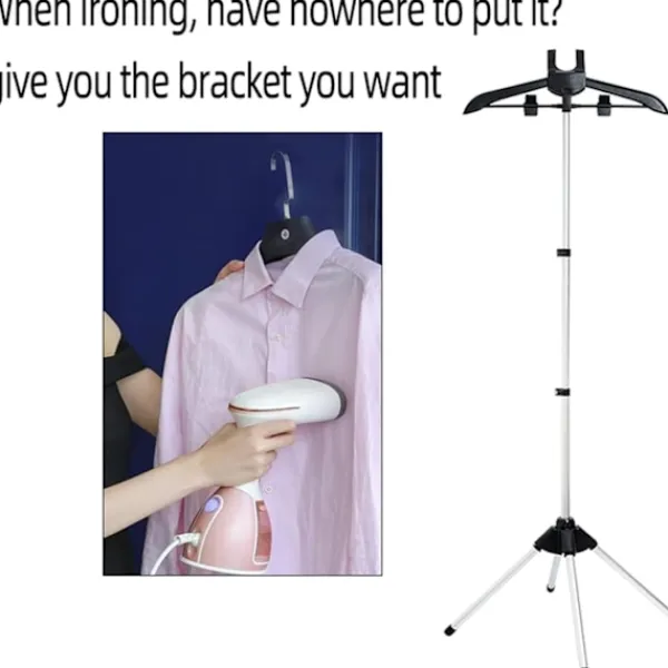 Handhållen klädångarställning tillverkad av aluminium och plast,Tre justerbara stänger, ångställningens totala höjd 160 cm.