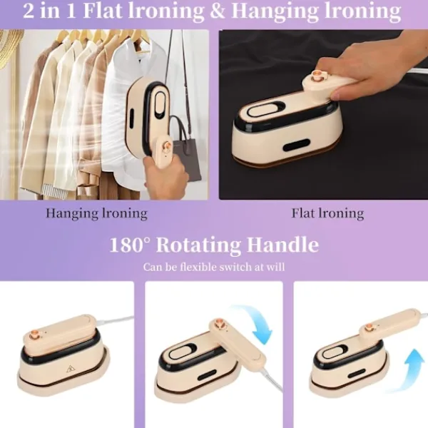 Mini Resefärgplanka, 2-i-1 Torr- och Ångstrykning, Bärbar Klädångare, Liten Planka med 180° Rotationshandtag