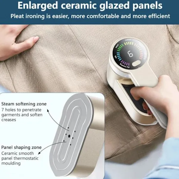【KRAFTFULLA FUNKTIONER】Kraftfullt ångstrykjärn, 9 sekunders snabb uppvärmning, uppgraderad keramisk glaserad stor panel, överdimensionerad panel med 7 små hål, snabb värmeledning, hög strykeffektivitet, förbättrar strykeffektiviteten avsevärt, ånga (ca 25 g/min) omedelbar frigörelse, direkt till rynkdelarna, fullständigt avdunstad utan att fläcka, så att kläderna är släta och jämna.