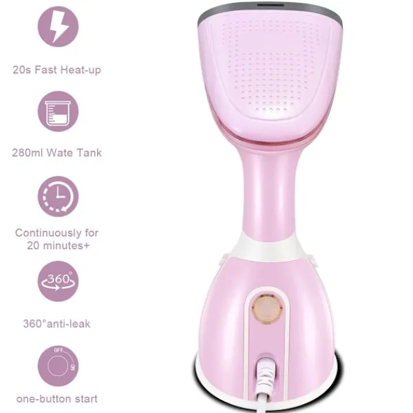 Snabb veckborttagning: Värmes upp snabbt på mindre än 20 sekunder. Kraftfull 1500W ångkokare med stor 280ml vattentank ångar i upp till 20 minuter. Kraftfull, jämn ånga tar bort rynkor snabbt och enkelt