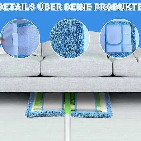 Effektiv rengöring Högkvalitativ mikrofiber har hög effekt, mjukt material, repar inte golvet, kan användas vått eller torrt, kan användas på alla typer av golv, inklusive massiva trälaminatgolv, keramiska plattor, marmor, laminat och linoleum. Rengör alla aspekter av ditt hem snabbt, utan ränder och effektivt.