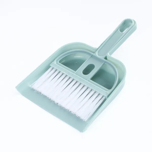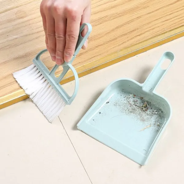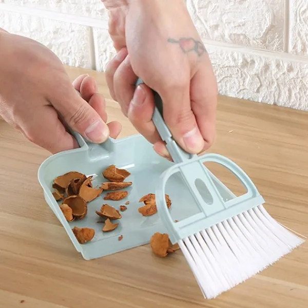 Rengöringskit för minisopor och kvast med humaniserad design, liten storlek, lätt att förvara, lätt att bära, sopskivan och kvasten har en håldesign, som enkelt kan hängas på väggkroken, dörren eller köket