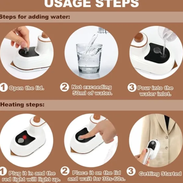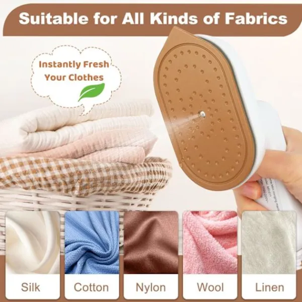 【Brett användningsområde】Mini järnet kan användas på siden, plysch, bomull, linne och andra tyger. Resejärnet mjukar enkelt och effektivt upp klädtyger djupt och tar bort envis veck och skrynklor.