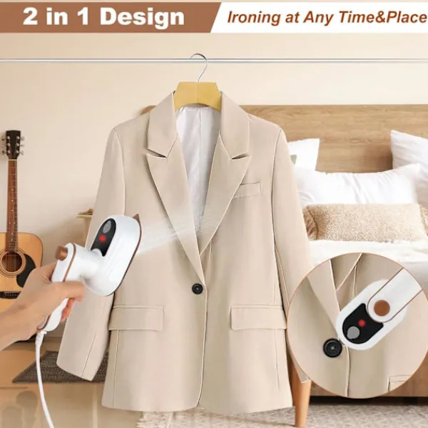【Bärbar mini ångjärn】Den bärbara ångjärnet har en hopfällbar handtagsdesign för bekväm förvaring och 180° flexibel växling mellan platt strykning och hängande strykning. Kroppen är mycket liten och lätt, väger endast 0,67 pund och kan förvaras i en väska.