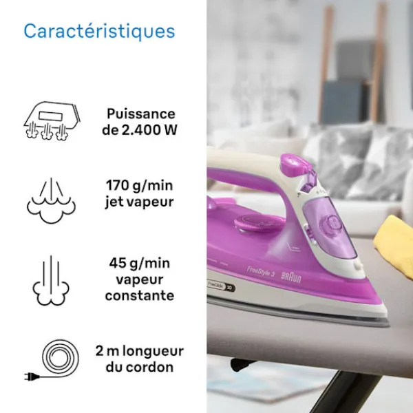 Be the first to review “BRAUN Strykjärn-Ångstrykjärn – – FI3124PU Freestyle 3 – Effekt 2400 W – SuperCéramic Sula – Vattentank 270 ml – Självrengörande rosa och vitt” Avbryt svar
