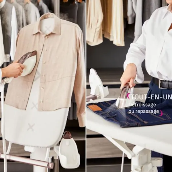 IXEO Vision erbjuder exceptionell prestanda och en lättanvänd hantering för perfekt ångning och strykning. Växla enkelt mellan snabb ångning och komplett strykning med hjälp av den mångpositions-bordet. Den kraftfulla ångan och den lätta järnet med LED-teknologi eliminerar veck med precision. Den avtagbara basen håller ditt hem i ordning. Ta hand om din stil varje dag!