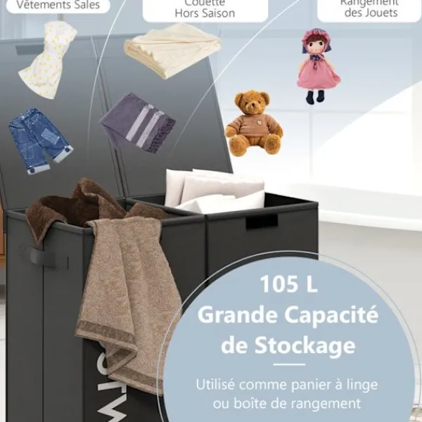 Be the first to review “COSTWAY Tvättillbehör-105 L smutsig tvättkorg, 2 fack, 2 avtagbara foderpåsar, handtag, för badrum, tvättstuga” Avbryt svar