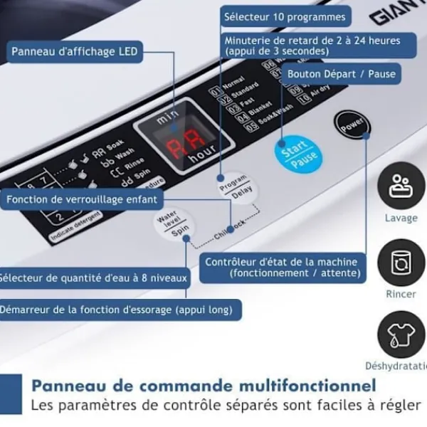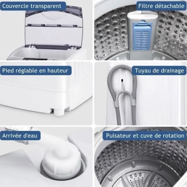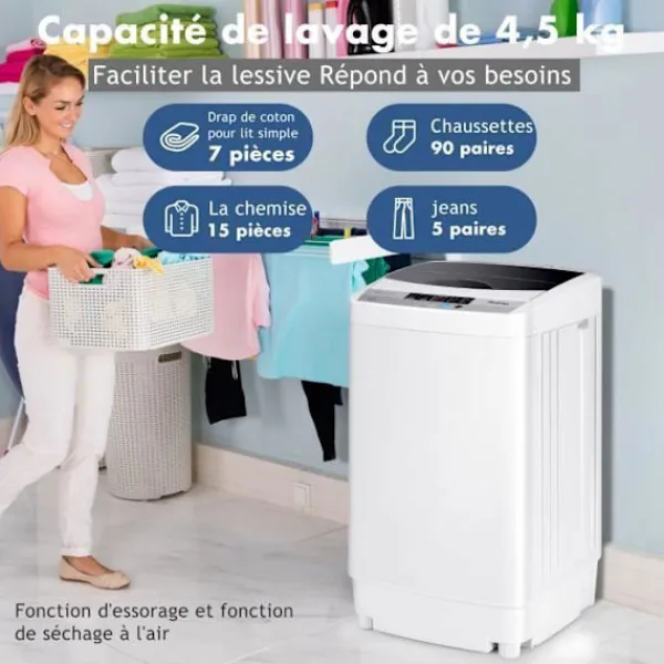 COSTWAY minitvättmaskinen är helautomatisk och har en tvättkapacitet på 4,5 kg. Den har 10 program, en LED-display och 8 vattennivåer. Med en aluminiumtrådsmotor erbjuder den kraftfull tvätt och rengöring. Det är också ekonomiskt när det gäller vatten och energi. Levereras med en 1,5m kabel, den är lätt att använda och förvara.
