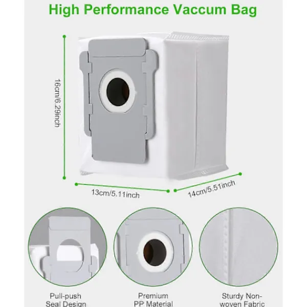 Högkvalitativt material Dammpåsen för iRobot Roomba i7 är tillverkad av 2 lager tjockare non-woven tyg och 2 lager smältblåst tyg, högdensitetstyg säkerställer lufttäthet och hållbarhet hos irobot roombas dammpåse och kommer inte att fastna i de inre vassa perforeringarna av soptunnan, vilket effektivt filtrerar 99,99% av smuts- och dammpartiklar.